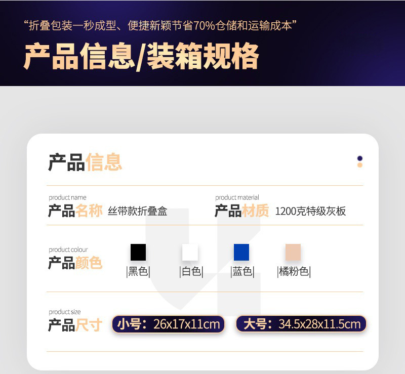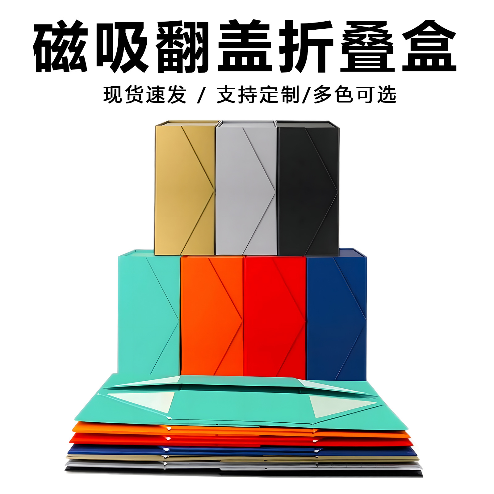 现货大号黑色折叠盒多色可选磁吸翻盖礼盒跨境一片式折叠盒批发
