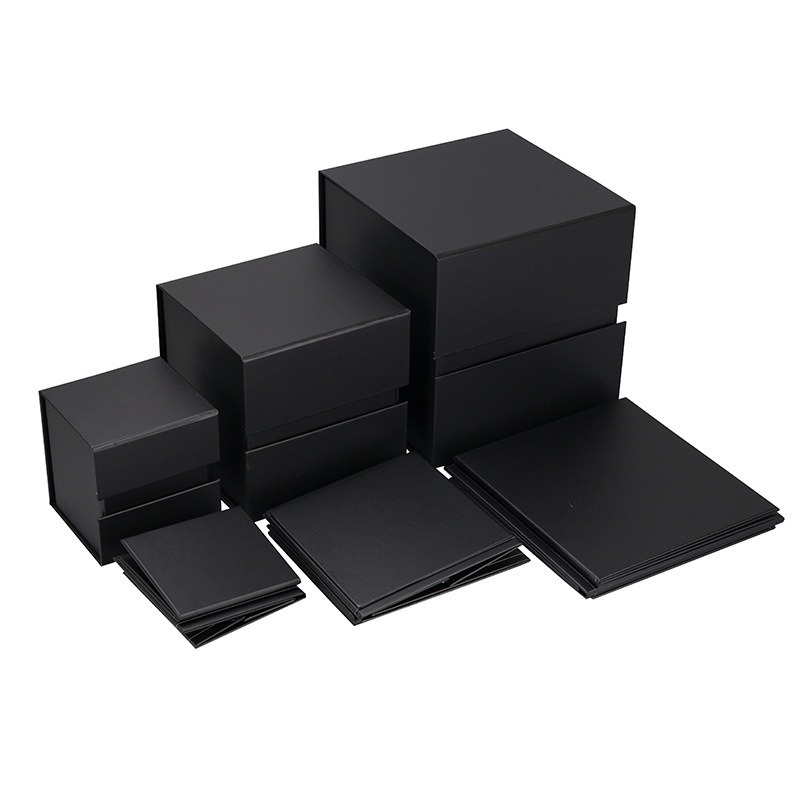 在庫あり 卸売 黒色 正方形 折りたたみ式ギフトボックス 環境に優しい 新型 ワンピース式 フリップカバー ハード折りたたみ紙箱