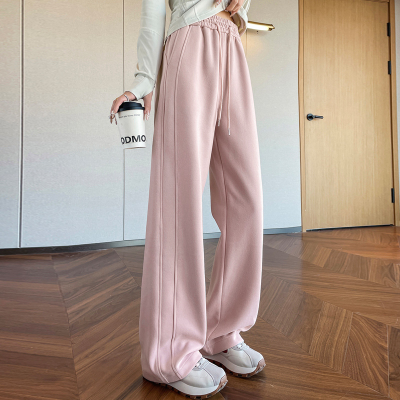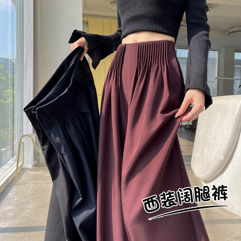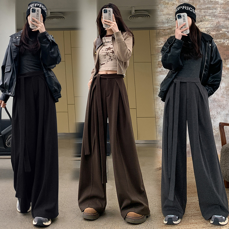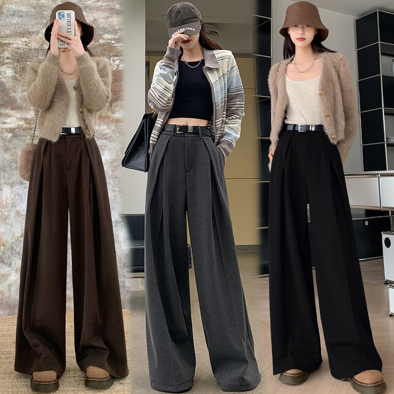 実際に毛をたたいているのは、ワイドパンツの女性2024秋冬高腰ラシャのカジュアルパンツが地面を引きずっている