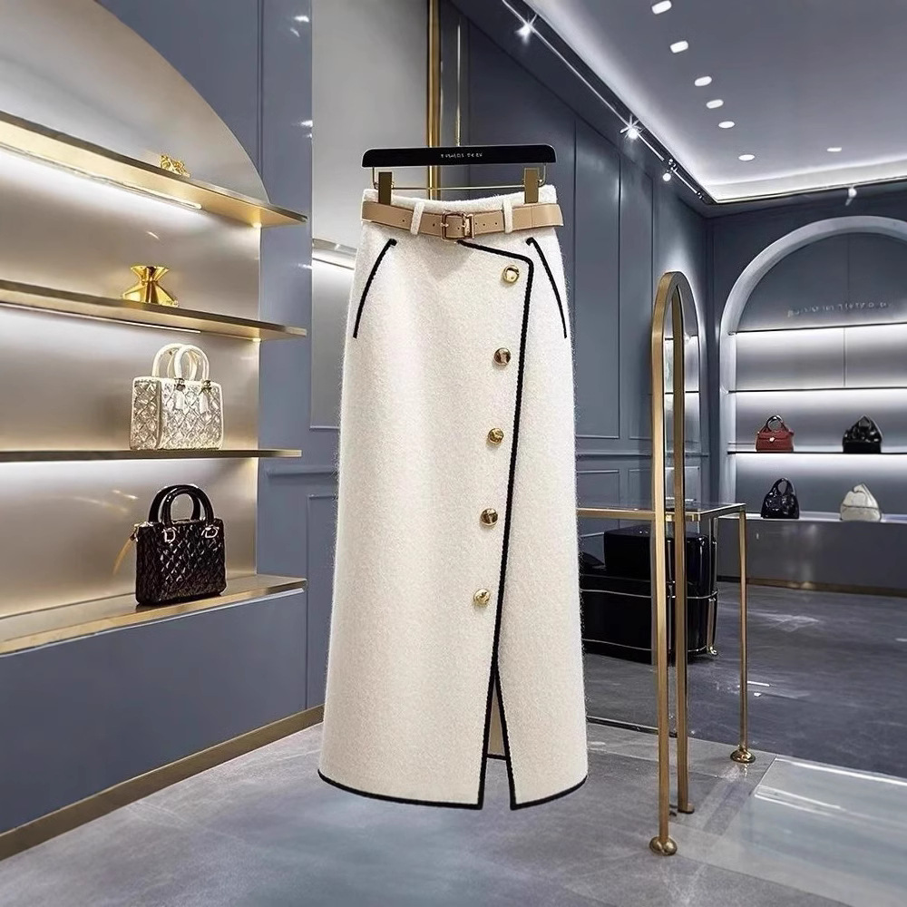 コーナー品質2025年春季起爆ファッション高級洗練されたロングスカート超きれいな白いa字スカート