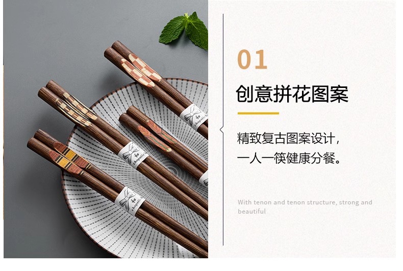 【禾豆c】日式新款高档木筷筷子创意防霉尖头家用防滑一筷鸡翅木