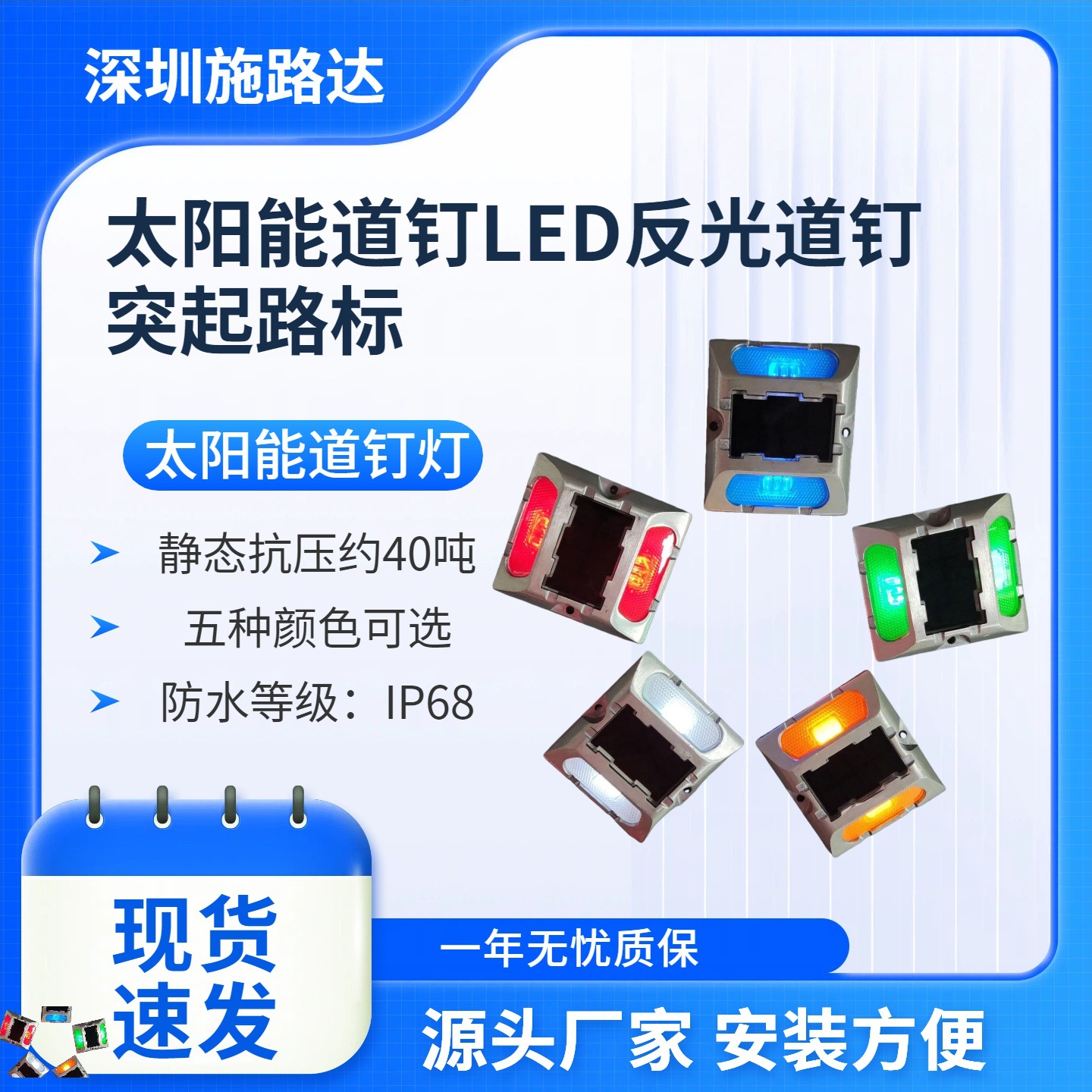 我司专业生产太阳能道钉灯、太阳能航标灯、太阳能地埋灯、智慧斑马线地灯等产品,采用晶元芯片灯珠、高效率太阳能硅片、长寿命充电电池,有方形和圆形不同尺寸及款式供选。欢迎广大道路工程、城市照明工程、出口外贸等公司及用户来电咨询和洽谈业务! 祝您购物愉快、生意兴隆!