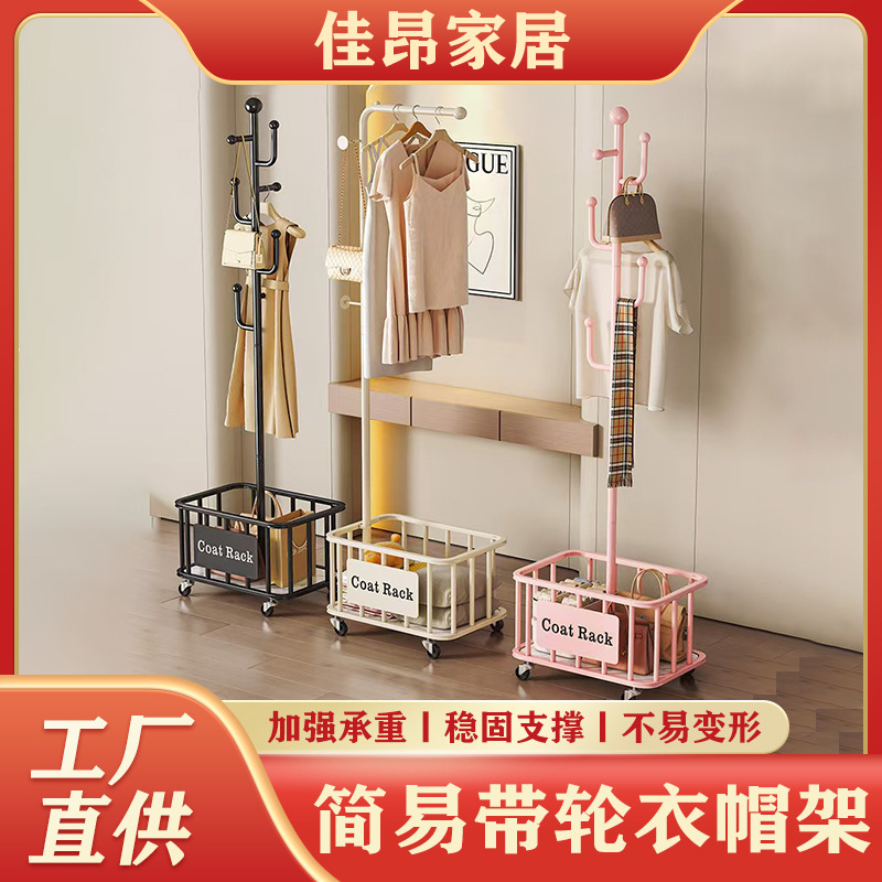 クリーム風網赤コートラック床置き寝室ハンガーシンプル家庭用縦型ハンガー室内服収納棚