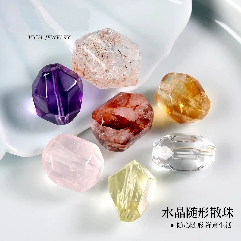 戎嘉麗水晶スイカ爆花晶散珠半製品円珠手作りビーズ部品ビーズメーカー卸売り