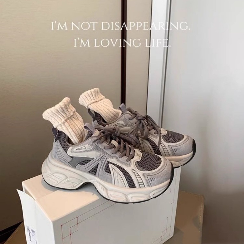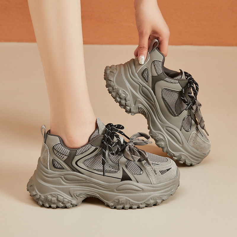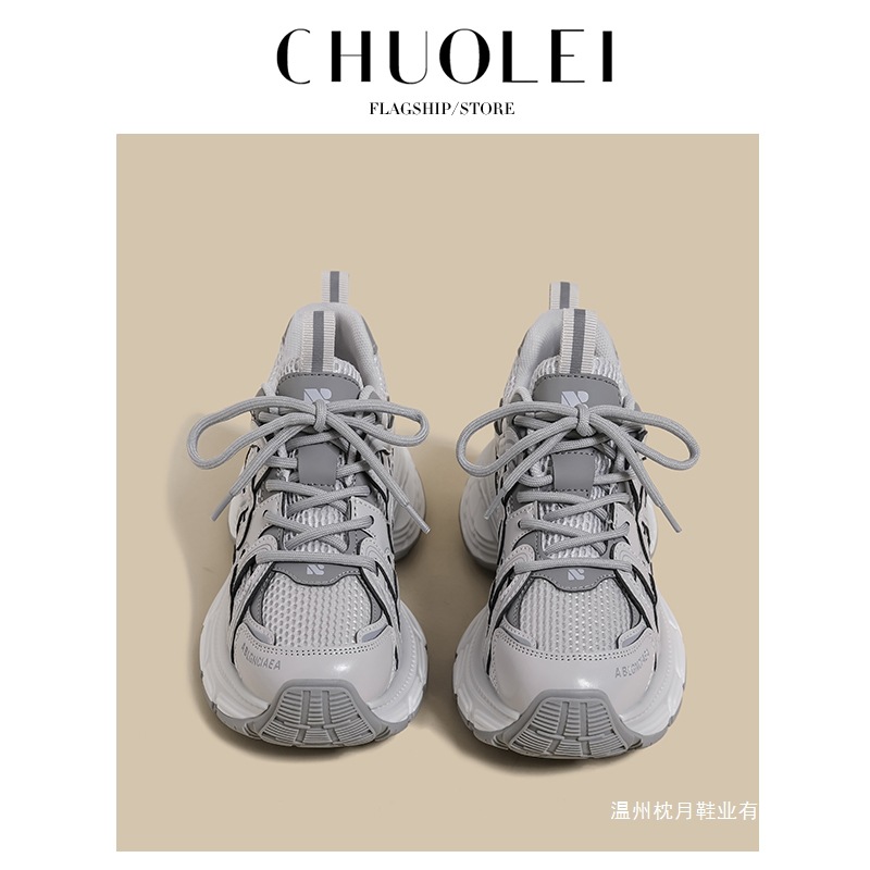 厚底老爹鞋女2025春秋季新款巴黎小个子增高灰色炸街重工运动鞋潮