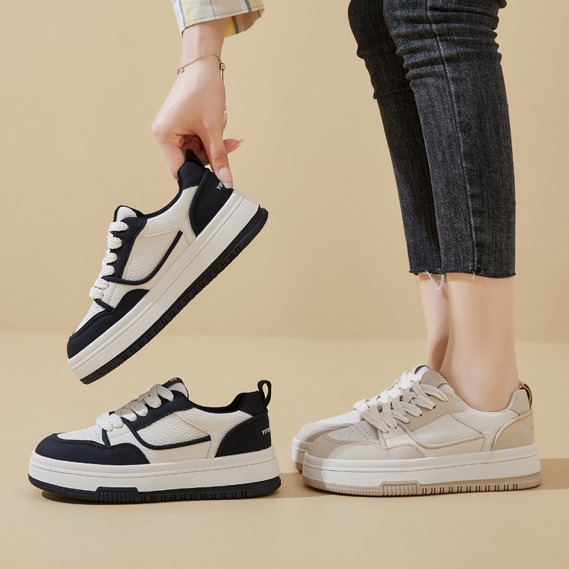 2025年新作カジュアルで多用途な厚底白い靴、女性用本革キャンパスシューズ、ファッショナブルでトレンディなスニーカー