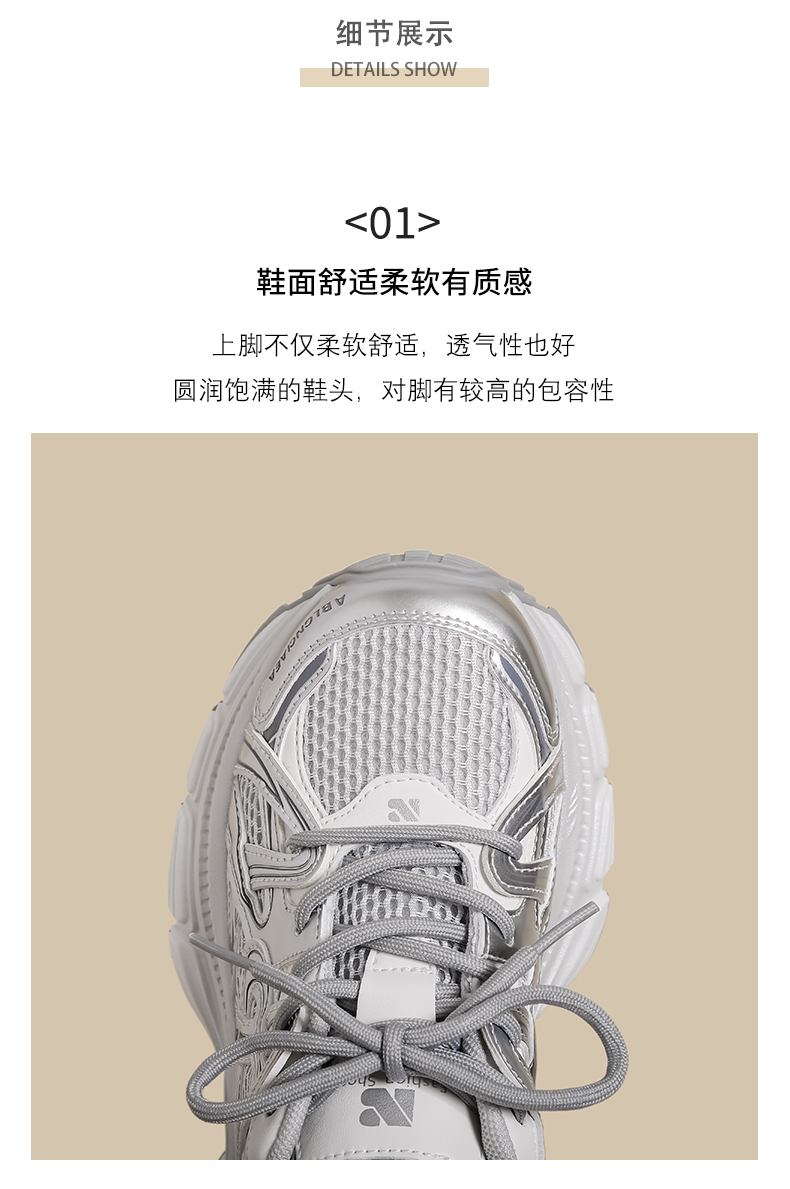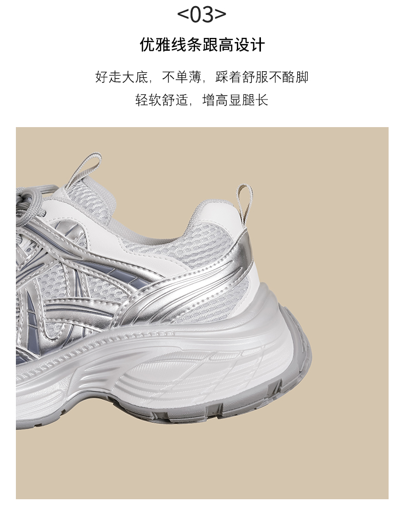 厚底老爹鞋女2025春季新款小个子银色百搭增高配阔腿裤休闲运动鞋