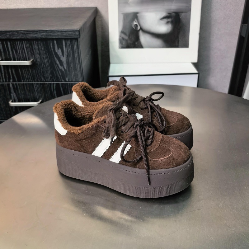 2025秋冬新款圆头厚底小个子真皮时尚休闲鞋增高6cm德训鞋女加绒