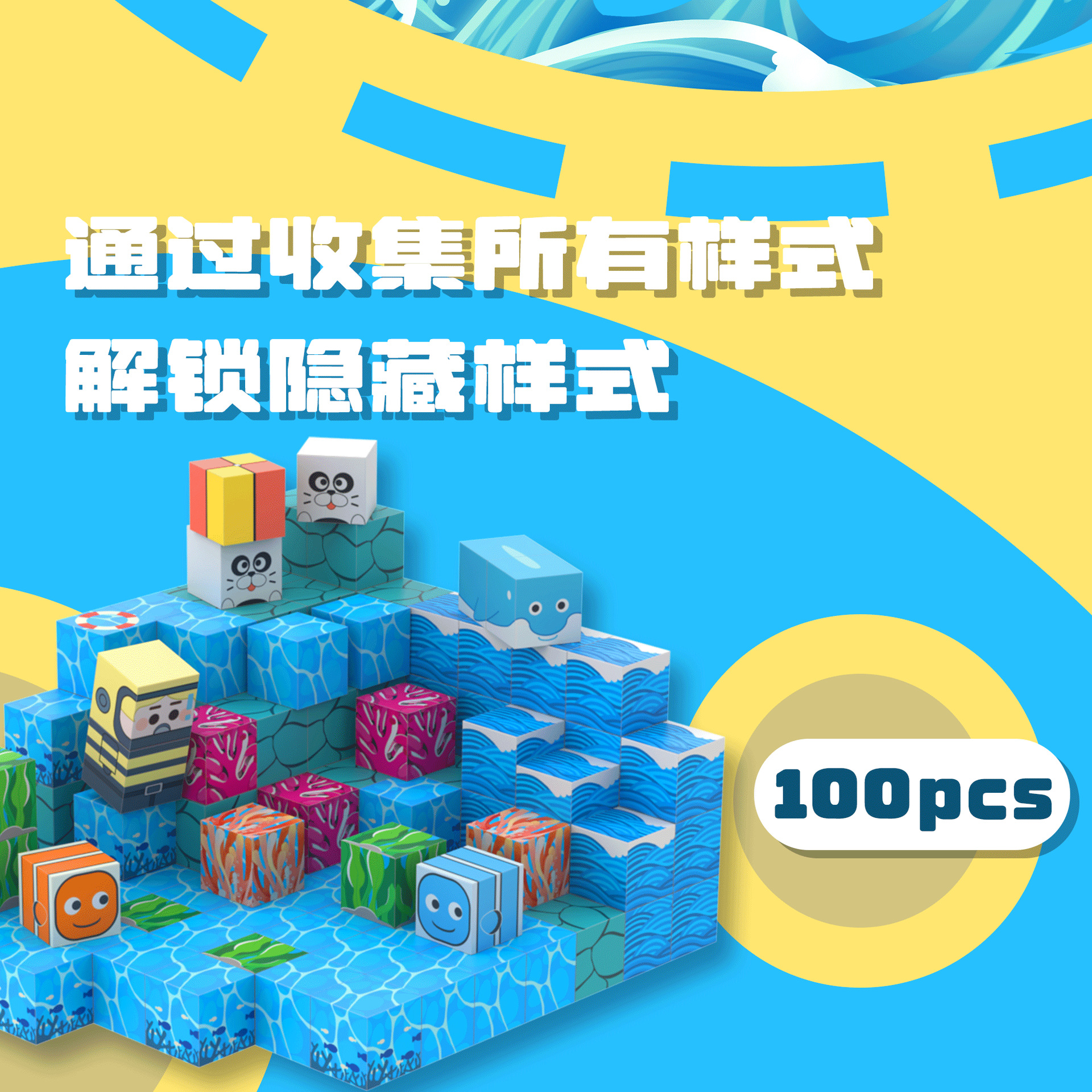 雀格各新型私の磁気ブロック世界セット海洋シーン知育玩具少年が積み木海を組んでいる