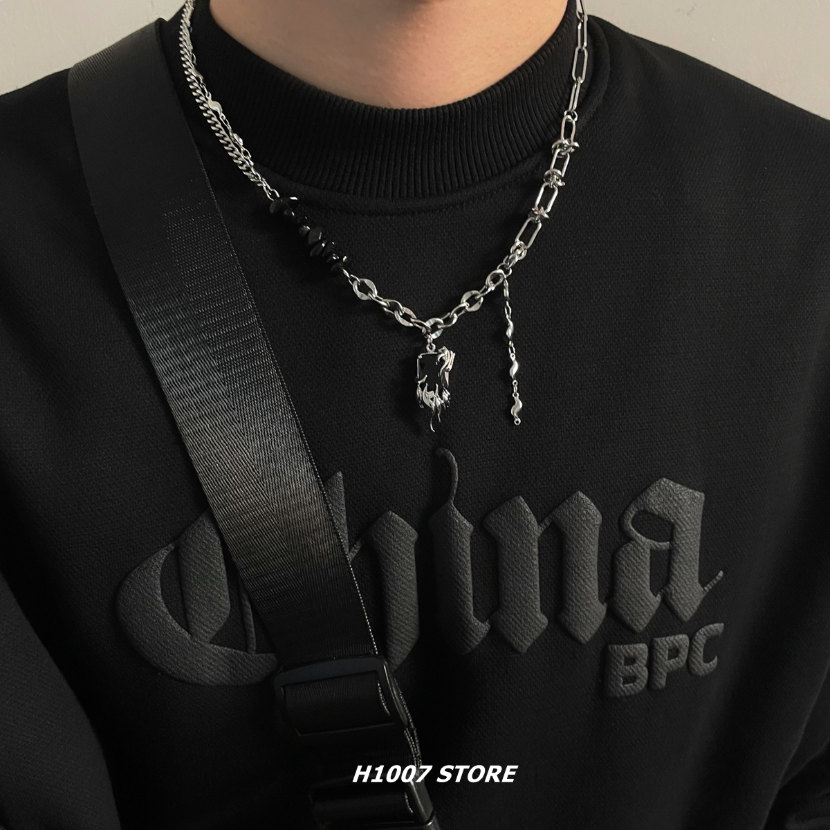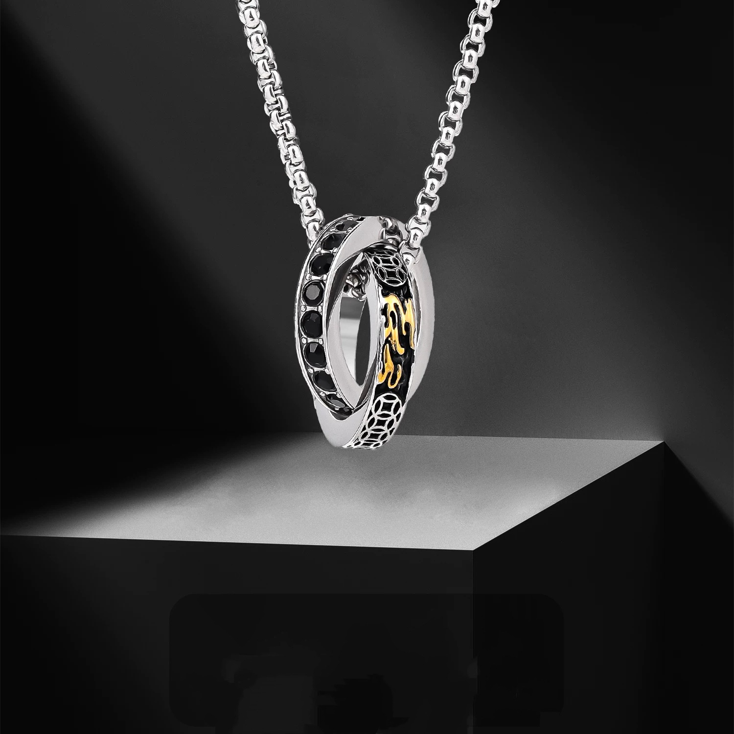 双环貔貅项链男潮个性冷淡风铜钱鎏金锁骨链时尚简约环环相扣吊坠