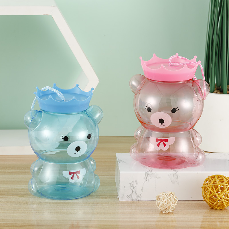 クラウンベア900ミリリットルpet漫画プラスチック透明包装ボトルブルーかわいい贮金箱キャンディー缶