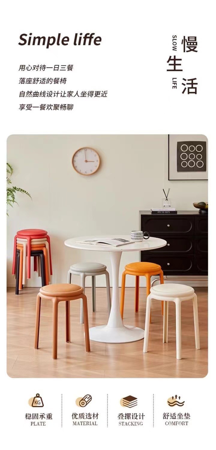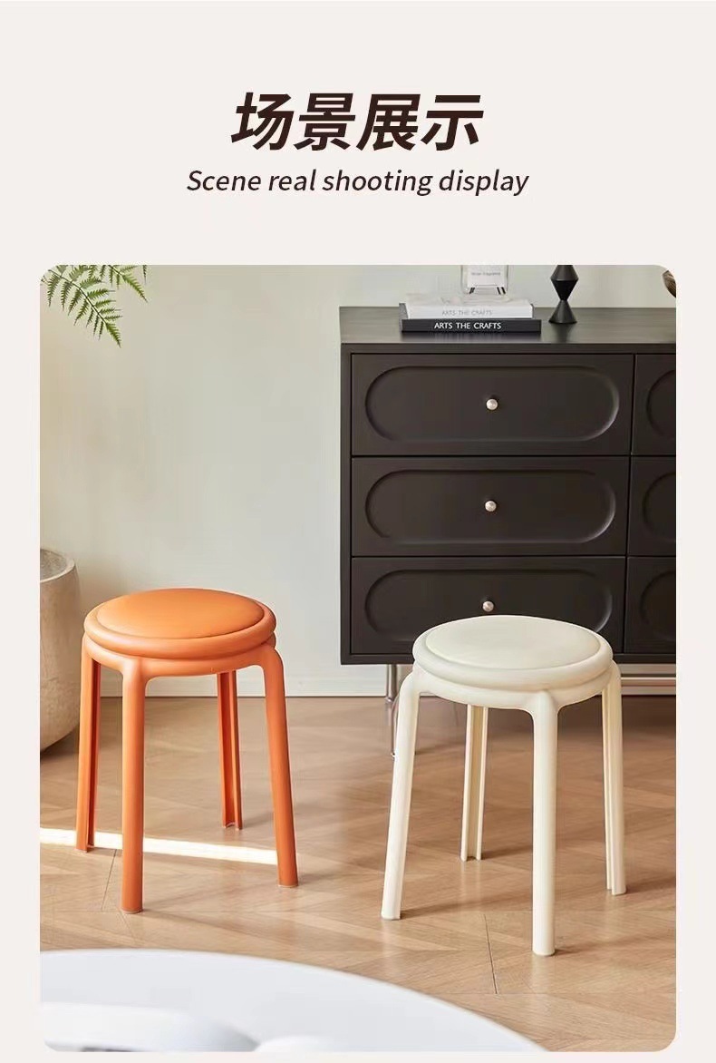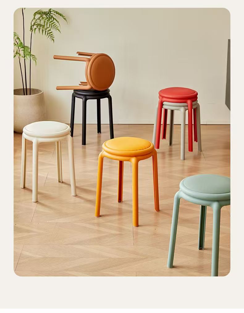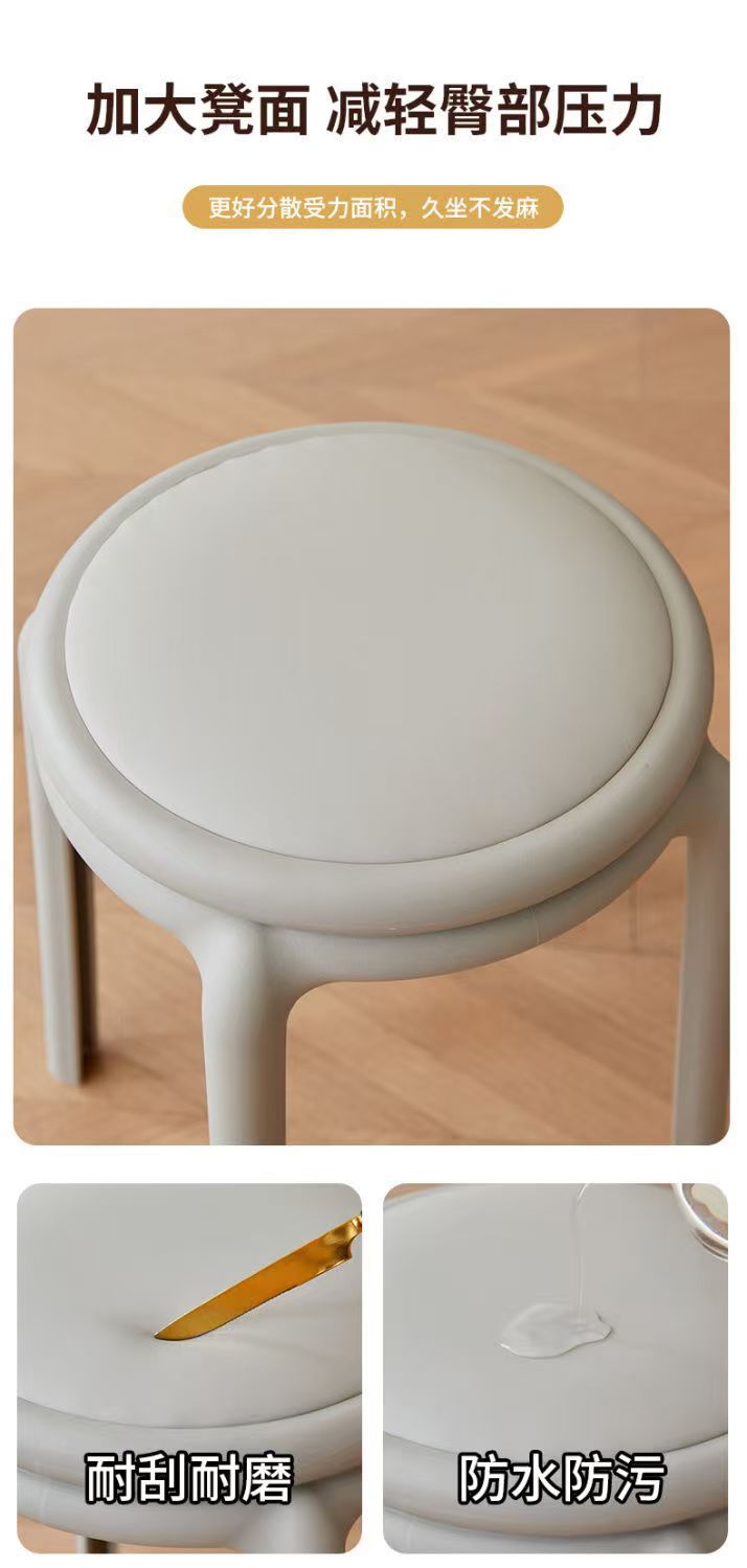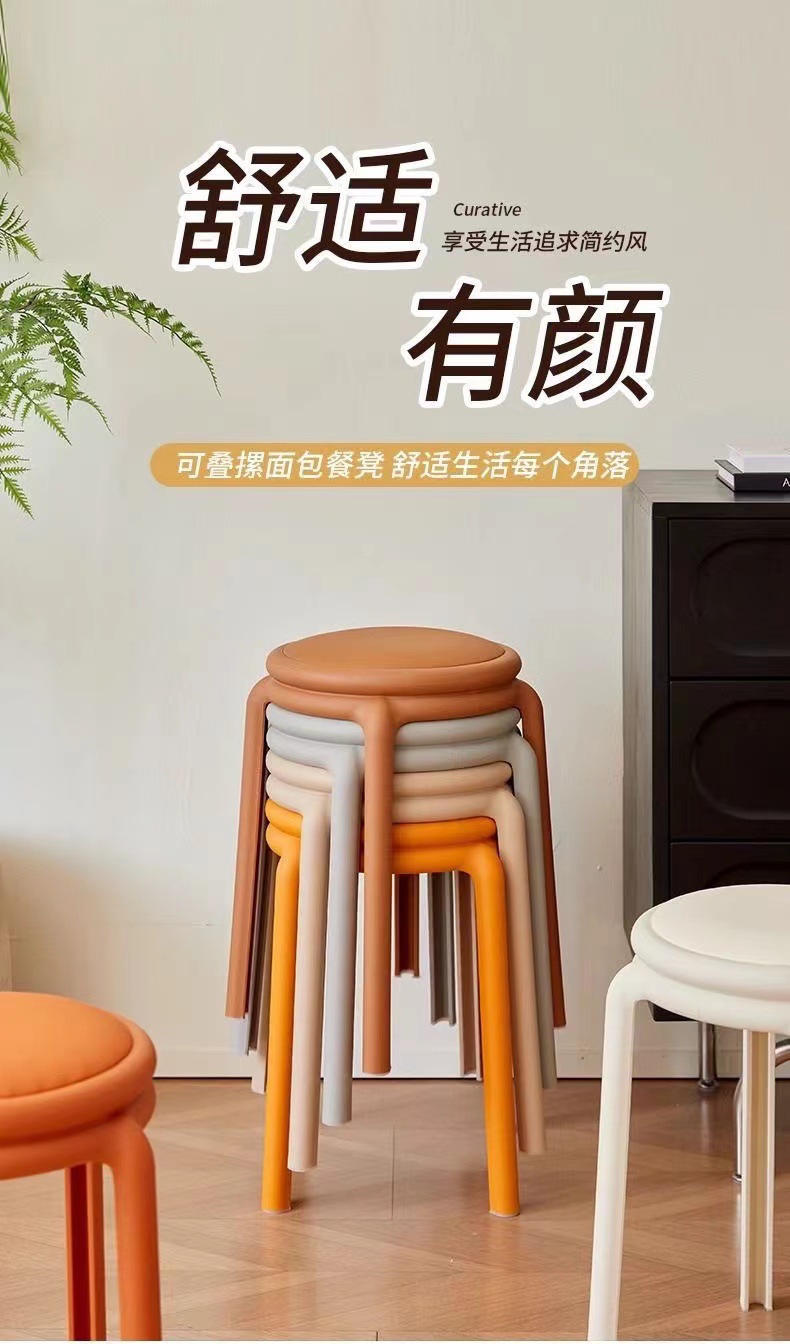 北欧塑料凳子可叠放凳子现代简约家用客厅餐厅圆凳子等位软包凳子