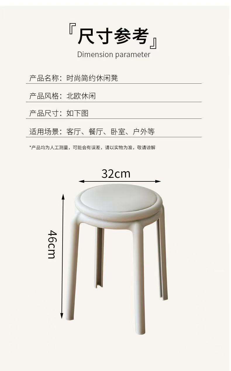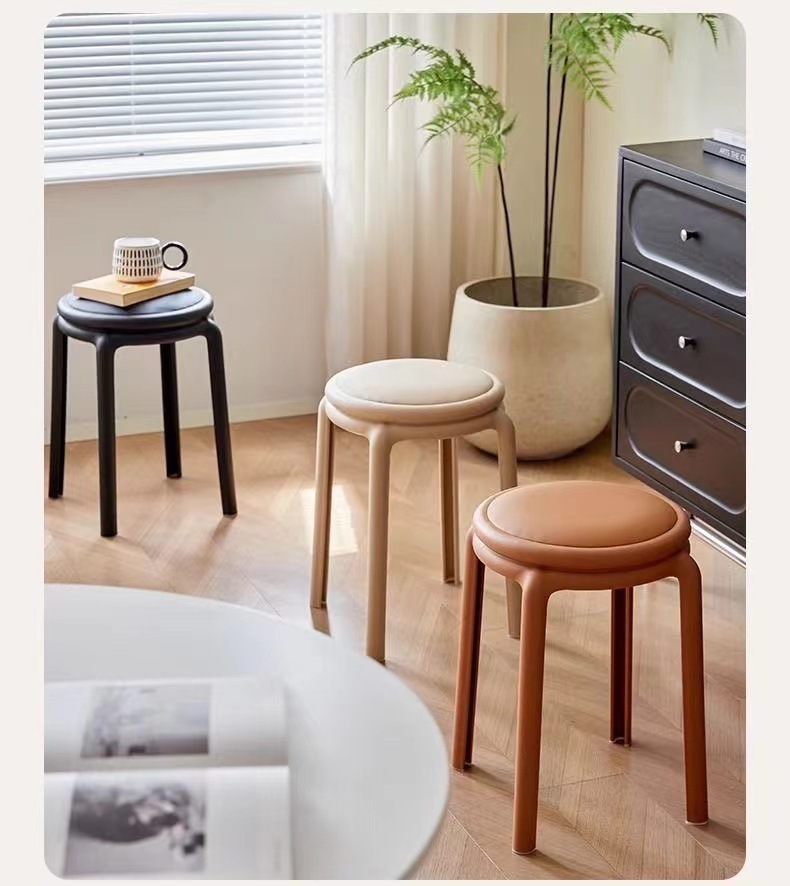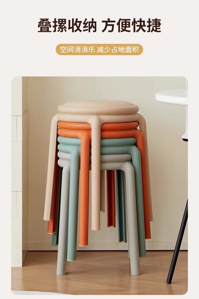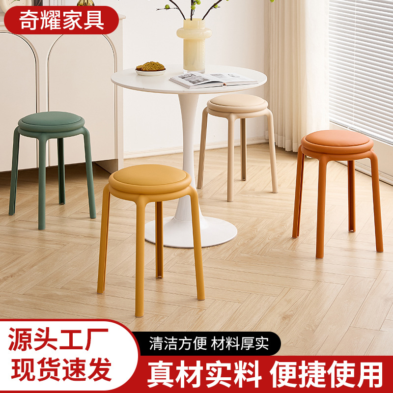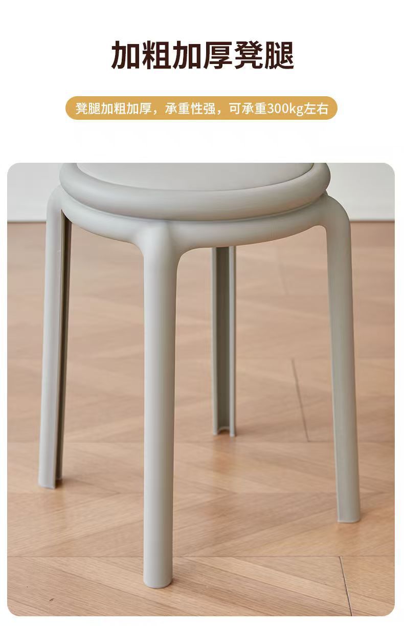 北欧塑料凳子可叠放凳子现代简约家用客厅餐厅圆凳子等位软包凳子