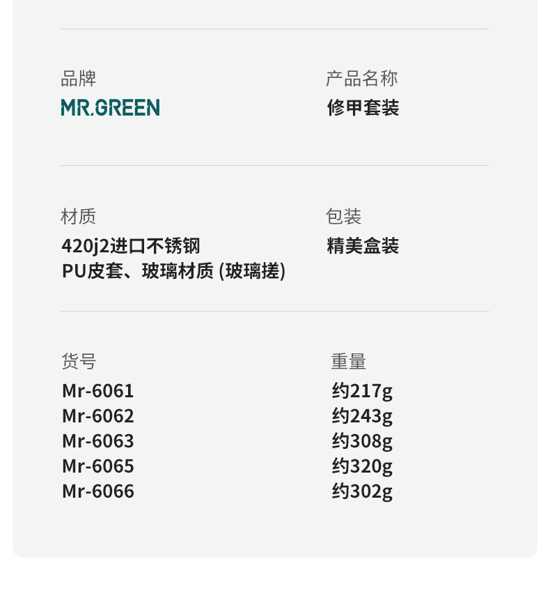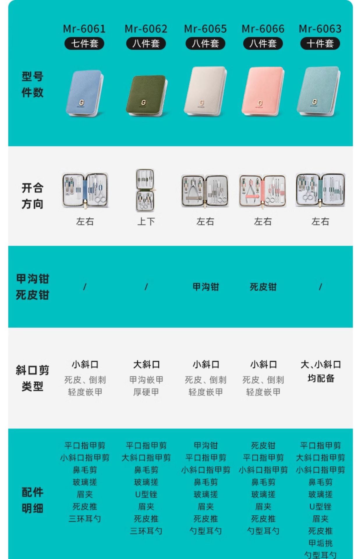 色の分類 7点セット Mr-6061,8点セット Mr-6062,8本組 Mr-6065 【爪溝ペンチ付】,8点セット Mr-6066 【角質ハサミ付き】,10個セット Mr-6063