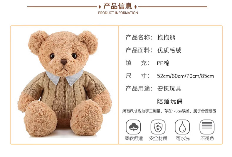可爱泰迪熊布娃娃公仔玩偶大熊毛绒玩具生日礼物抱抱熊男女生睡觉