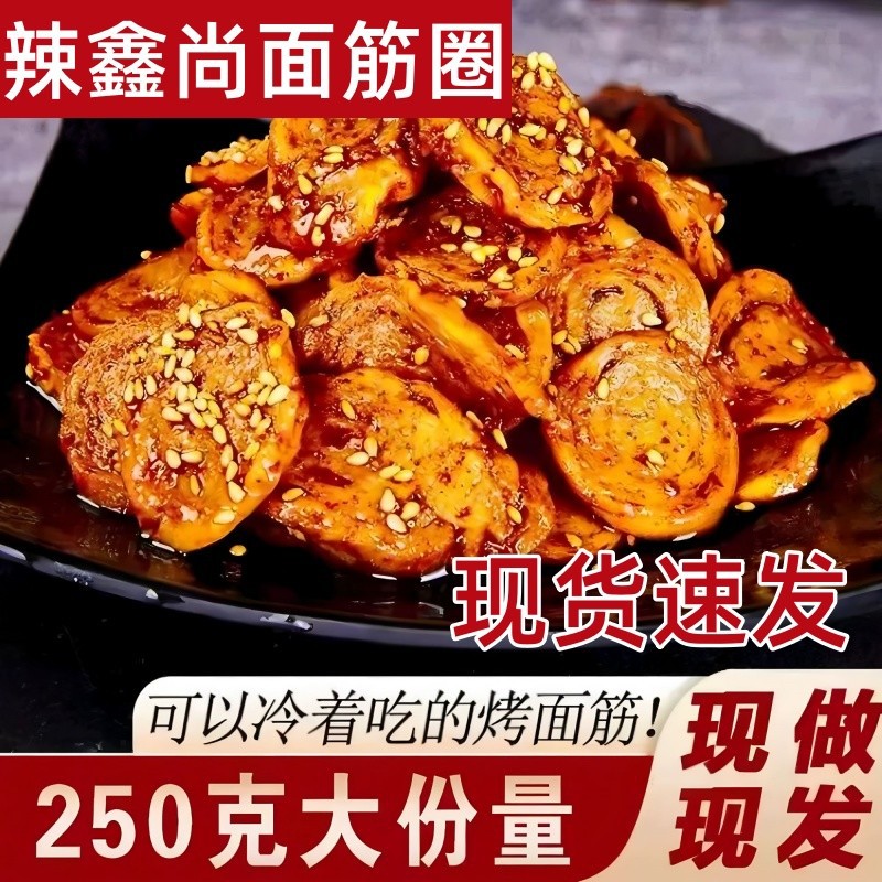 陕西特产手工麻辣面筋圈即食辣鑫尚面筋圈面筋卷辣条零食烤面筋