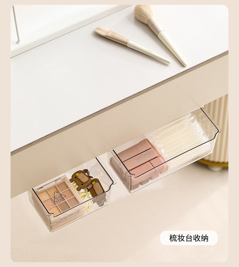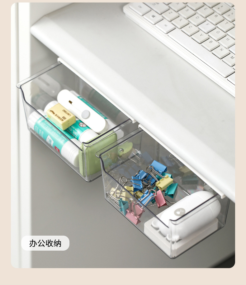 ファソラの机の下に引き出し式の収納ケースがあります。