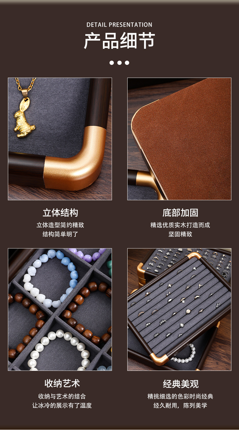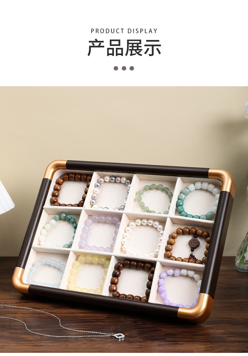 胡桃木色相框首饰盘50位戒指耳钉盘珠宝展示看货盘饰品收纳托盘