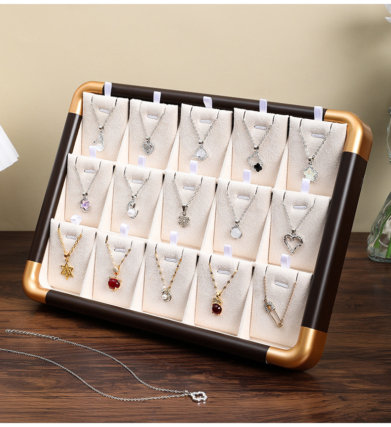 ウォールナットカラージュエリーディスプレイトレイレトロジュエリーディスプレイ無垢材ネックレストレイジュエリーブレスレットカウンターストール