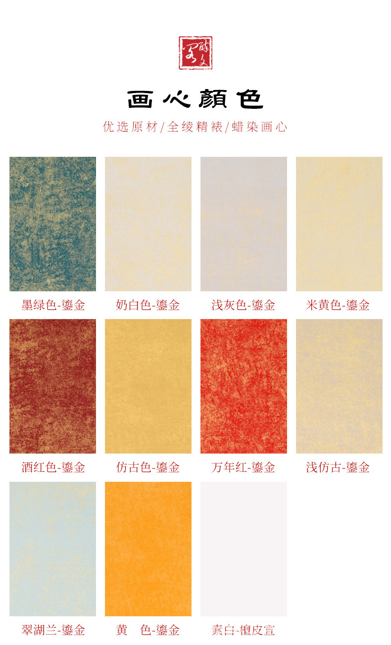 万年赤金,宮殿の黄色の金箔,クリアウォーターオーキッド金箔,ライトアンティークゴールド,乳白色の金箔,ベージュゴールド,ダークアンティークゴールド,バーガンディゴールド,ダークグリーンゴールド,白檀無垢材の皮