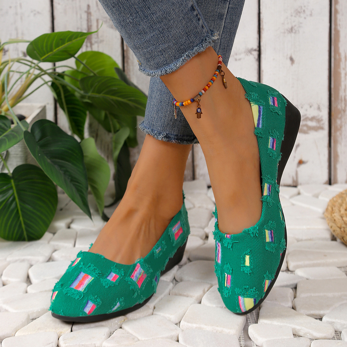 外国貿易の大きいサイズの低い靴の女性の越境の丸い頭は足の浅い口の透かしをはめて色の豆の靴のアマゾンをつづり合わせます。