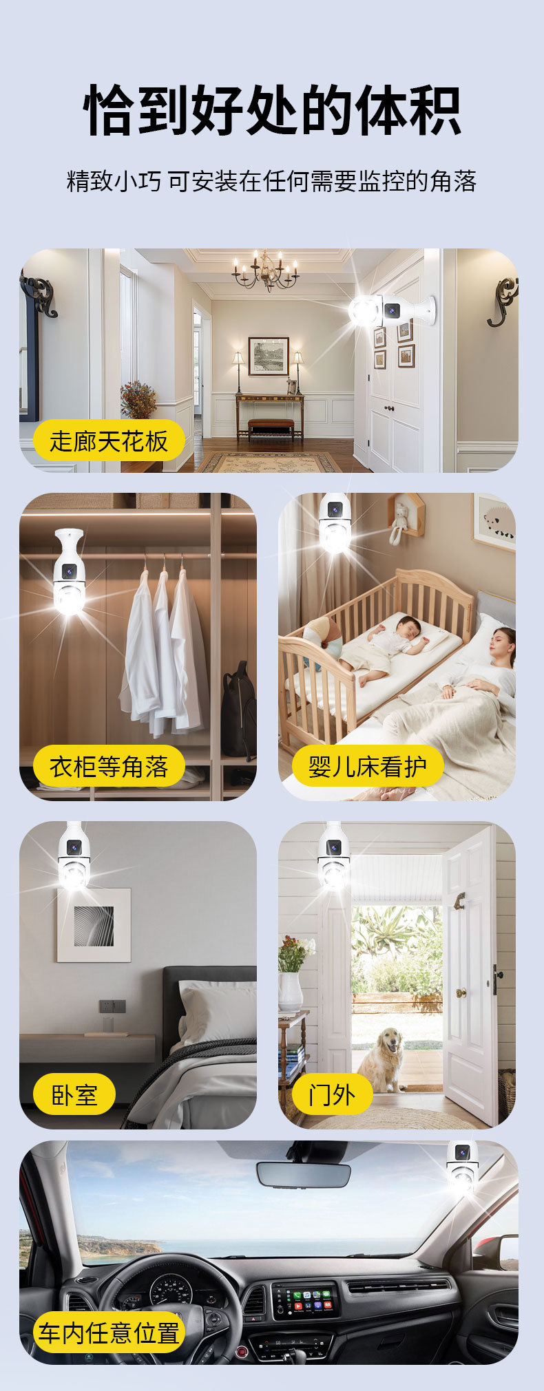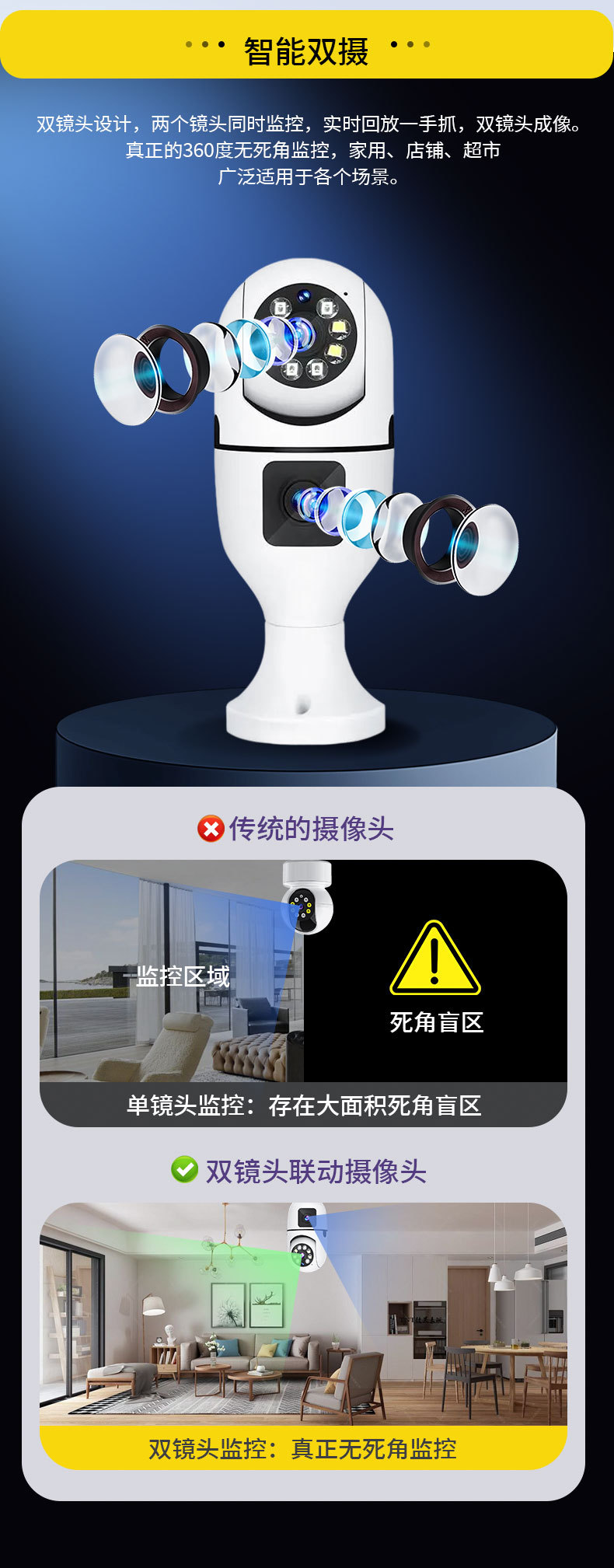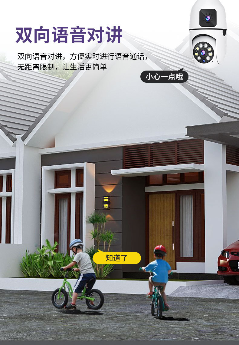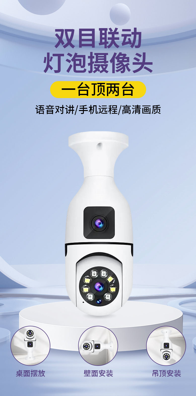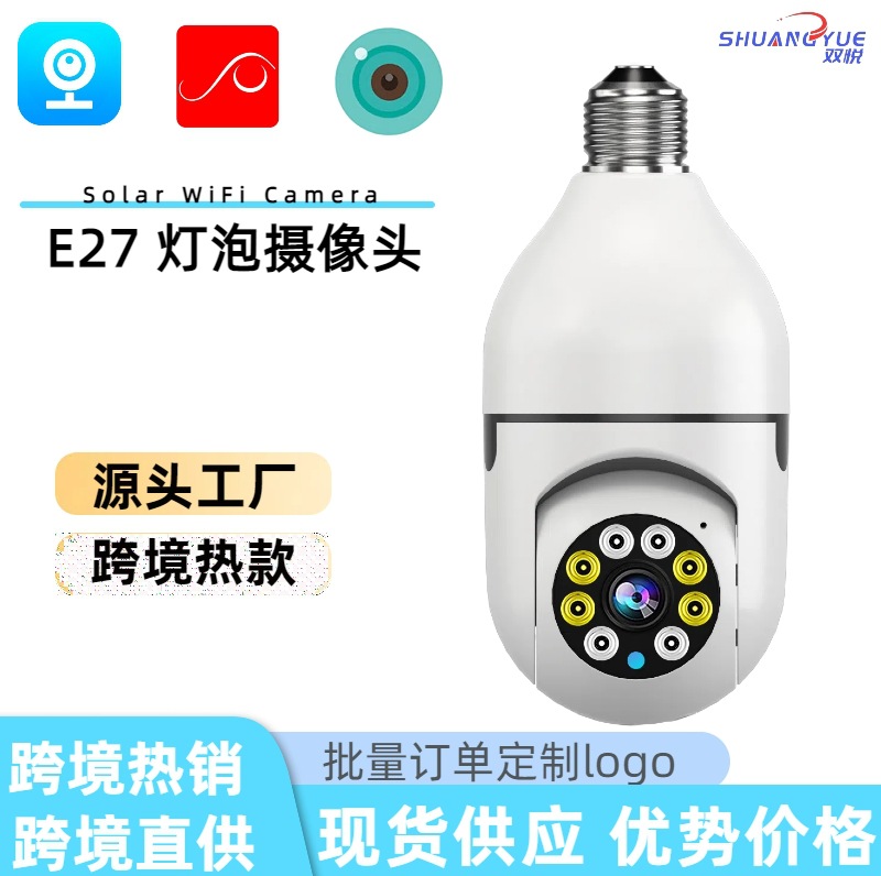 3MP跨境爆款双目灯泡摄像头无线双画面全彩高清夜视360室内双光监