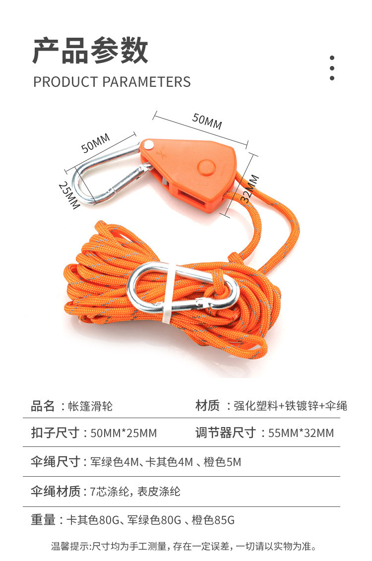 屋外の天幕の速い固定の縄器のキャンプのテントの風の縄の滑車は調節します。