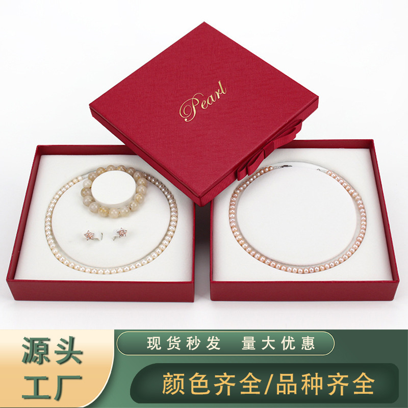 真珠のネックレスのブレスレットの3つのセットのアクセサリーの箱のリボンは紙のネックレスのピアスの収納箱のお母さんのチェーンのアクセサリーの箱を満たします。