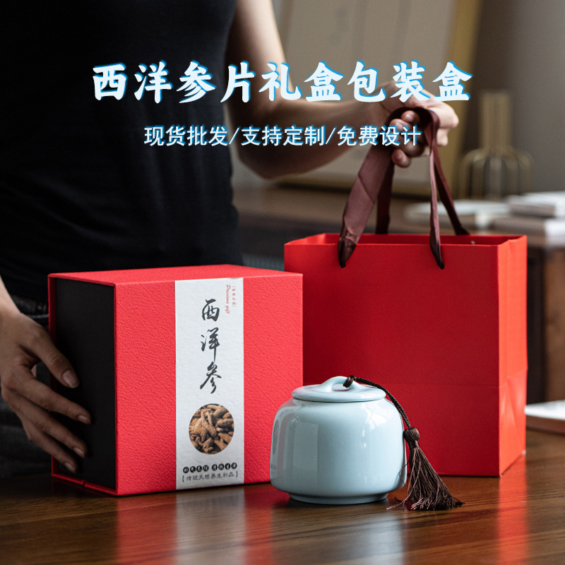 アメリカ人参スライスギフトボックス包装箱ハイエンドデンドロビウムギフトボックスハイエンドセラミック瓶包装箱空箱セット