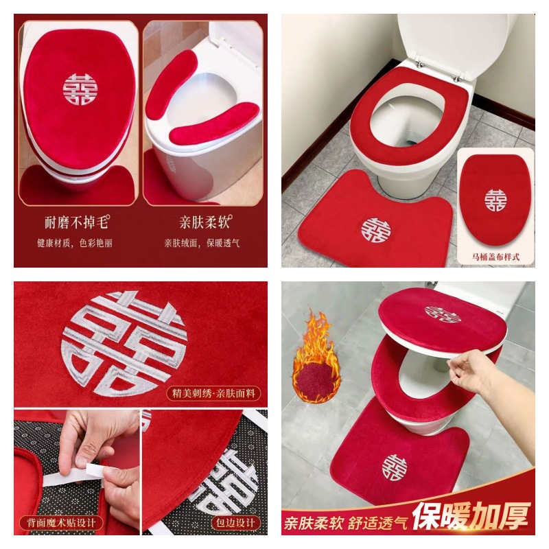 結婚用品トイレマット結婚祝い大紅色喜字結婚式ルームトイレ装飾お祝いトイレマットセット