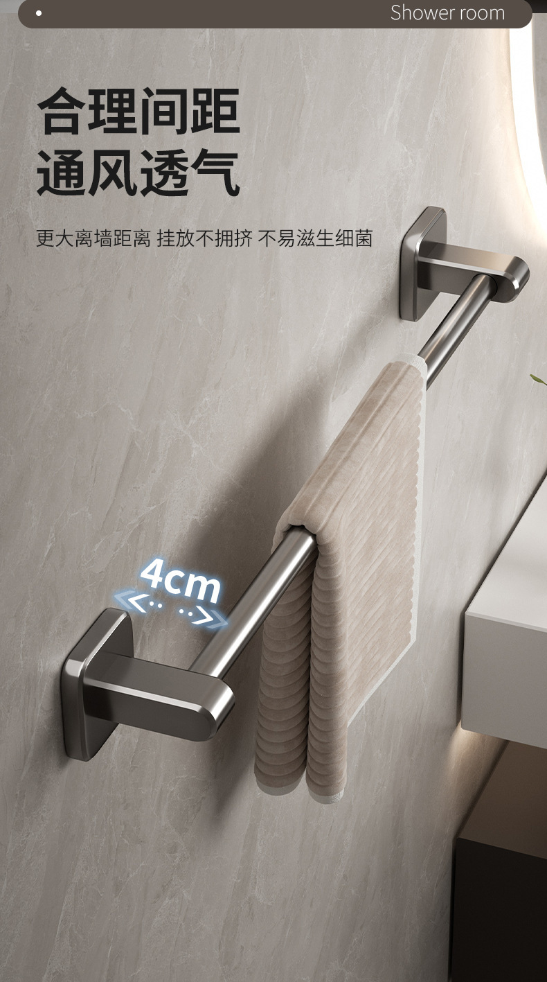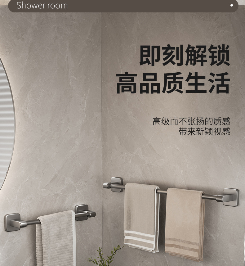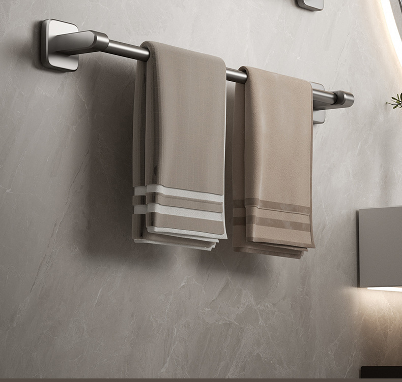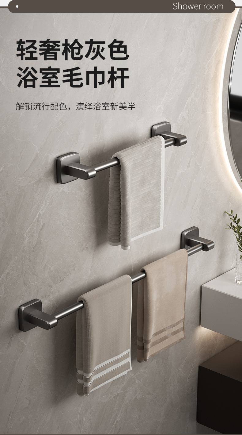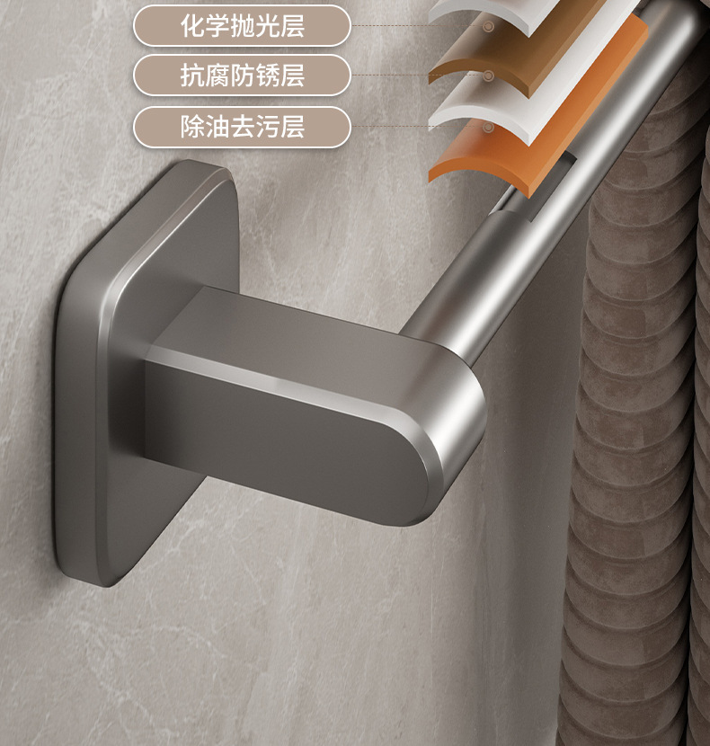 宇宙飛行アルミ浴室銃灰タオルラック一体穴なしトイレ置き物ラック壁掛け式バスタオルラック