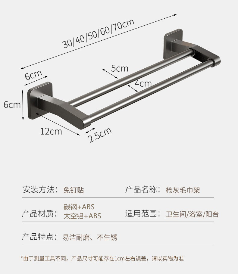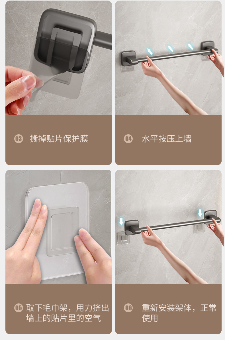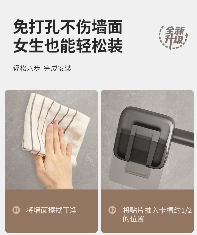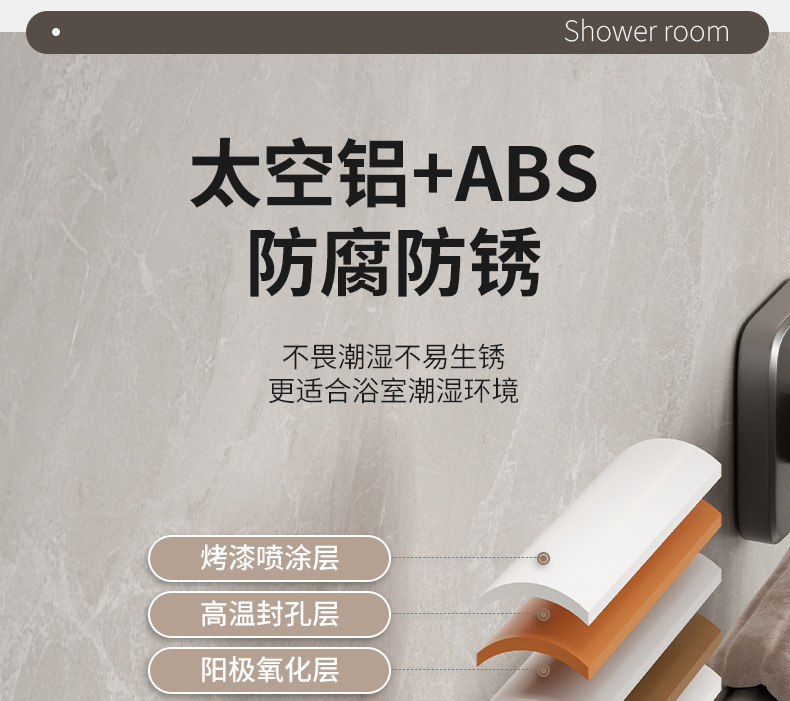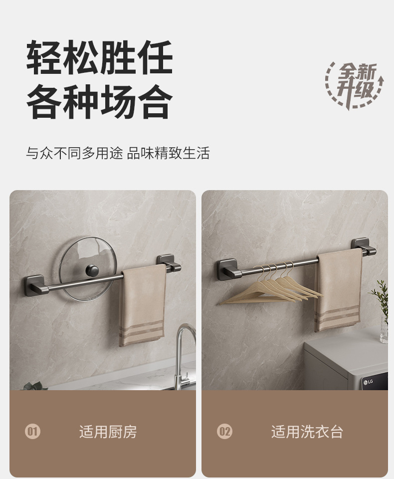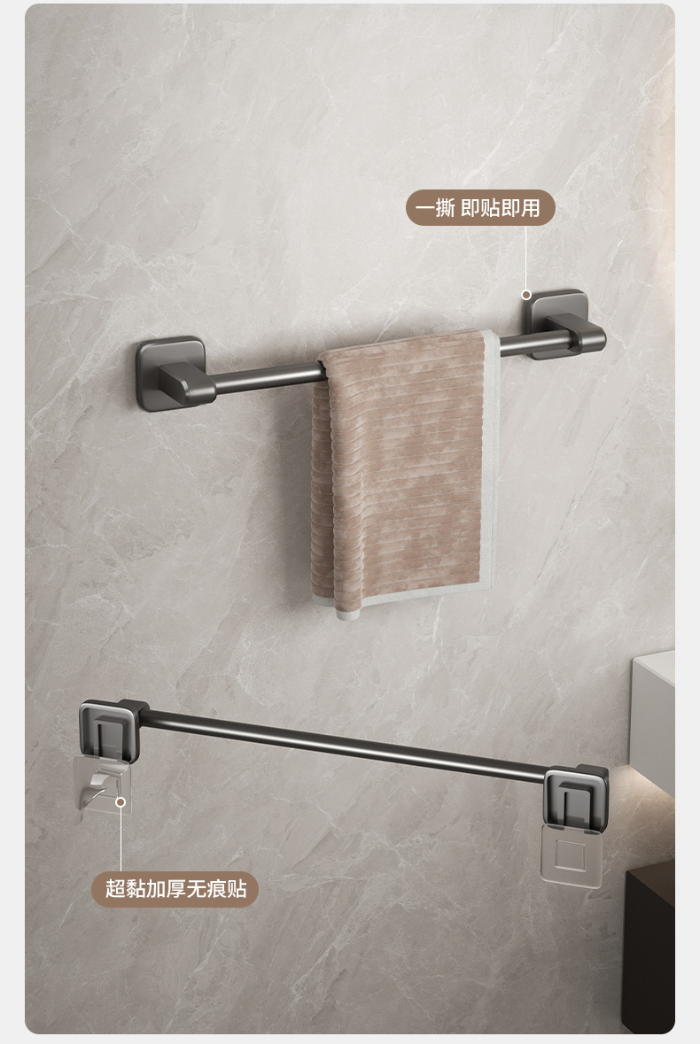宇宙飛行アルミ浴室銃灰タオルラック一体穴なしトイレ置き物ラック壁掛け式バスタオルラック