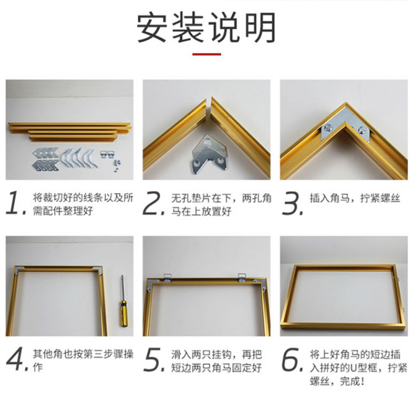 カスタマイズされたアルミ合金装飾額縁ポスターソファ壁画ボーダーフロント背景画像ゴールドボーダー