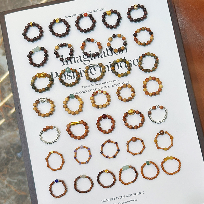 寂風退廃風瑪瑙虎眼石木珠天然石指輪オリジナル指環ビーズ指輪