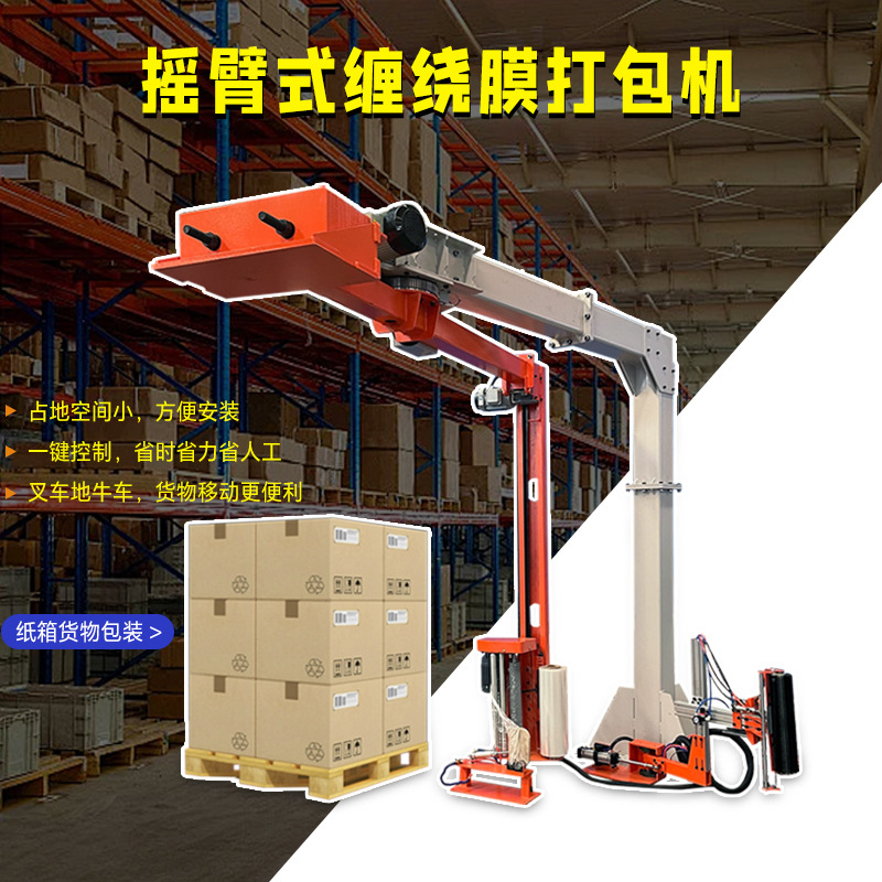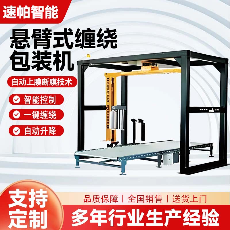 定制摇臂缠膜机工业托盘吨包悬臂型缠绕包装机高速龙门缠膜打包机