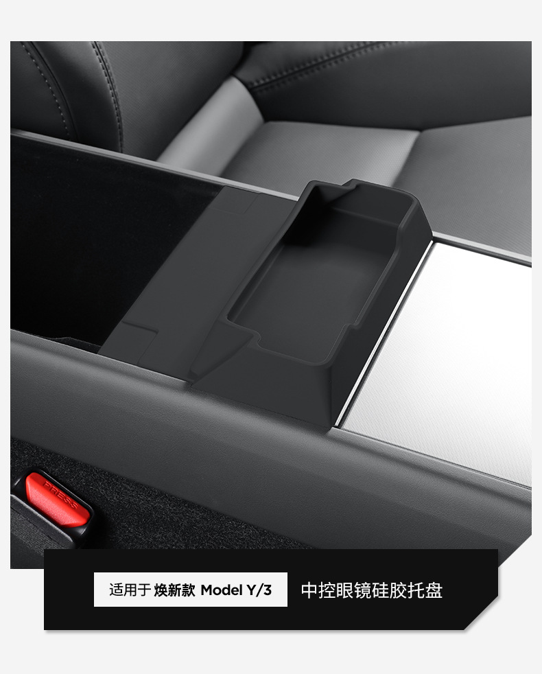适用特斯拉25款焕新版Model3 Y/YL中控扶手箱硅胶眼镜托盘收纳盒