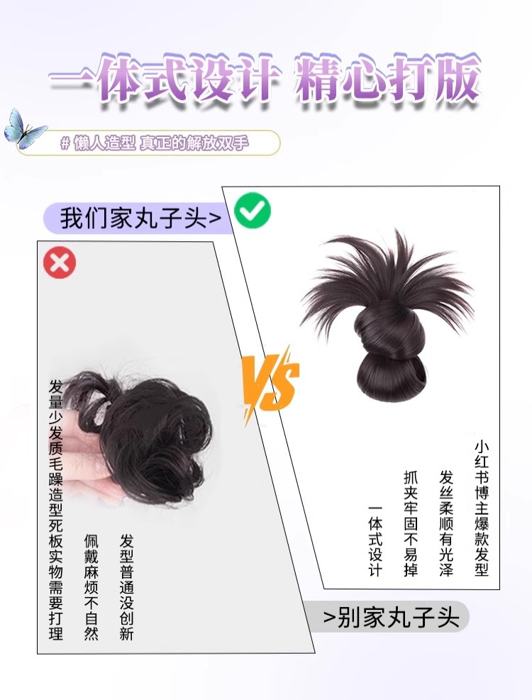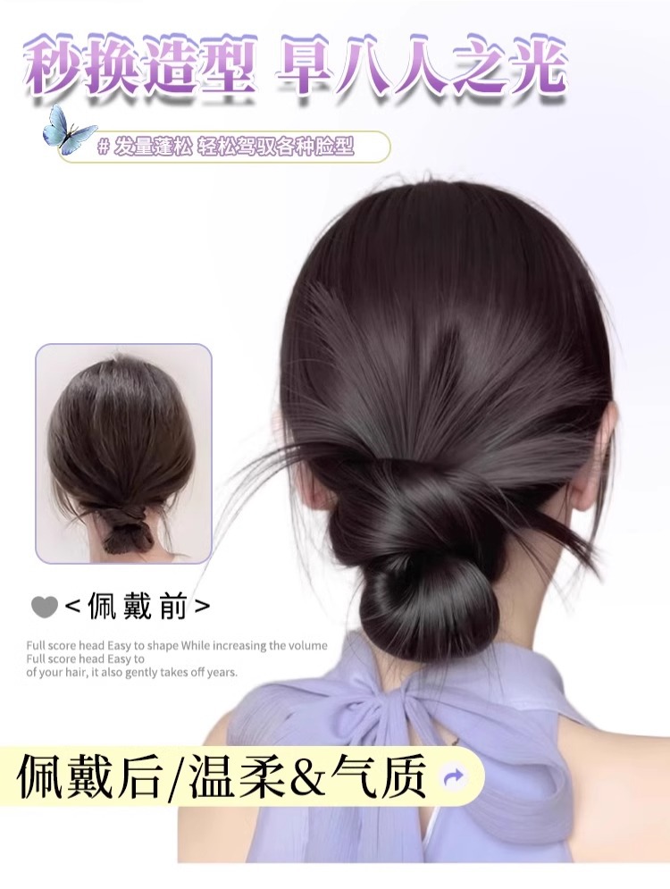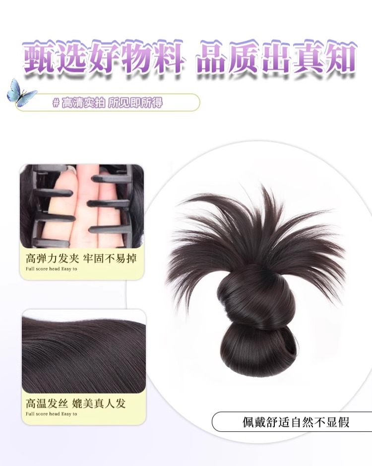 鸡毛抓夹花苞丸子头假头发女蓬松增发量仿全真人发饱满后脑勺发圈