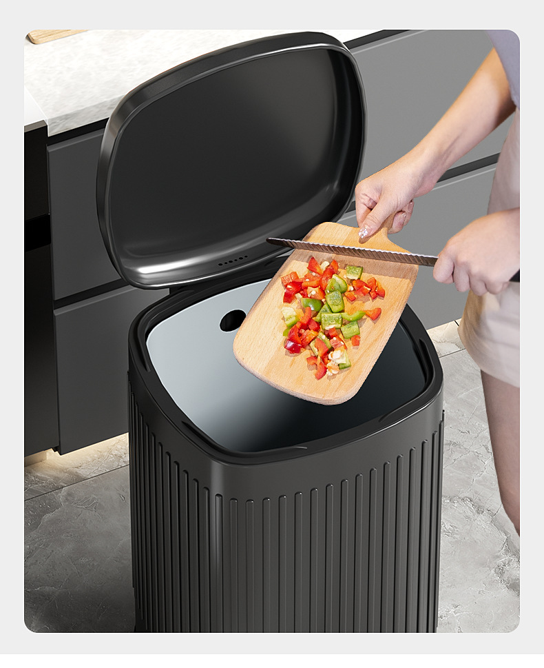 国境を越えた軽贅沢家庭用スマートキッチン、バスルーム、トイレ、リビングの隙間用、蓋付き大容量ステンレス製ゴミ箱