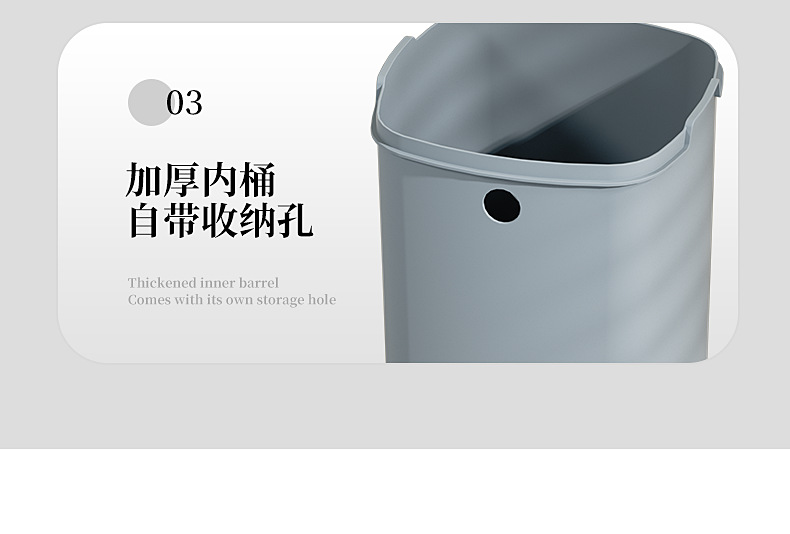 家庭用ゴミ箱ホテルキッチンリビングルーム寝室トイレ高颜値角型二重ステンレスゴミ箱蓋なし