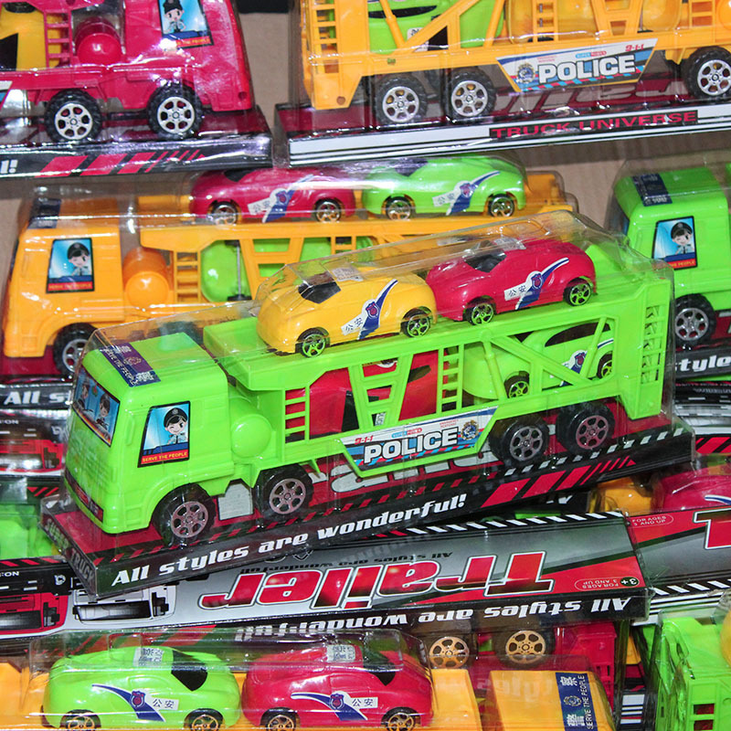 児童玩具車セット大箱二重トレーラー大型トラックパトカー露店玩具9元9デパート卸売り