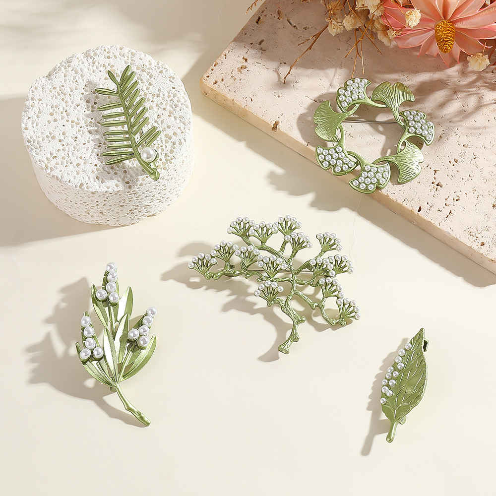 复古森系合金绿色植物树叶子胸针镶珍珠小清新毛衣配饰别针胸花女