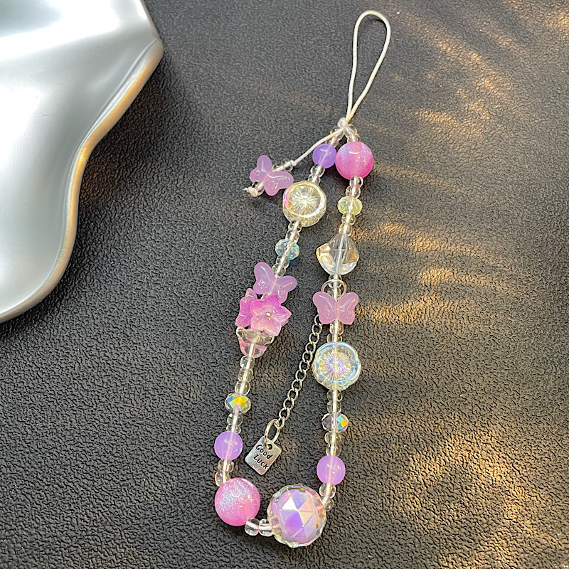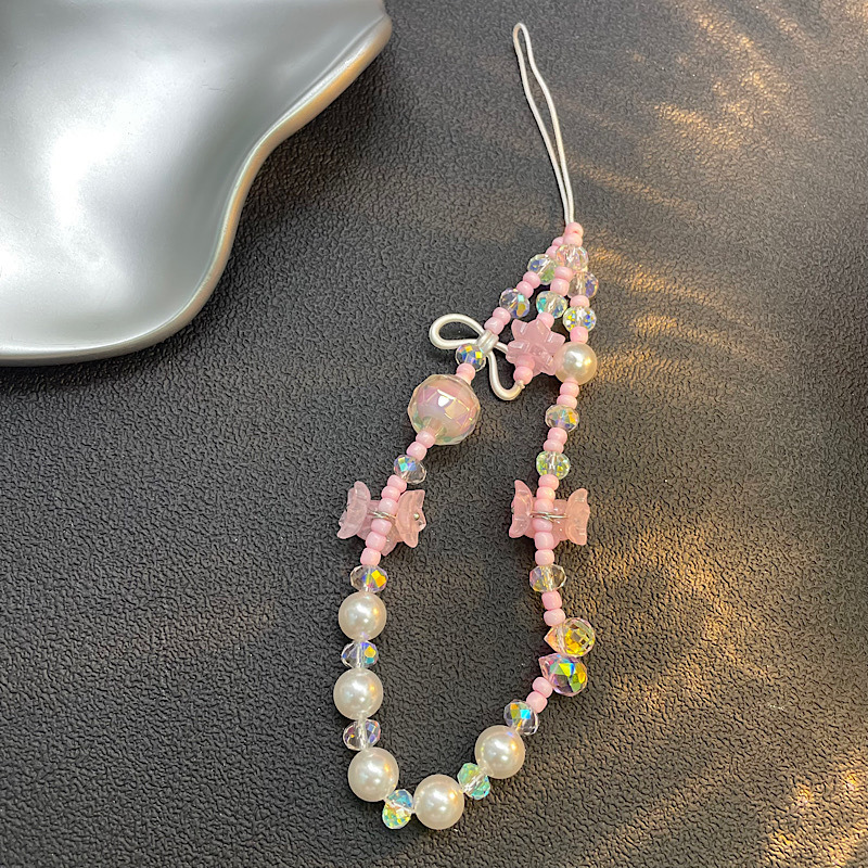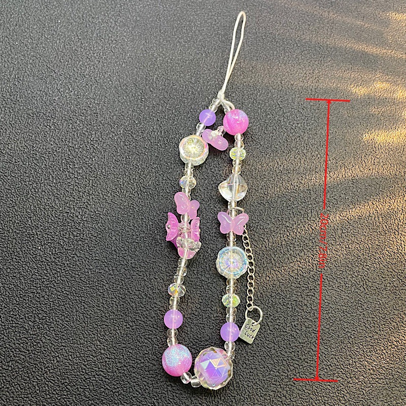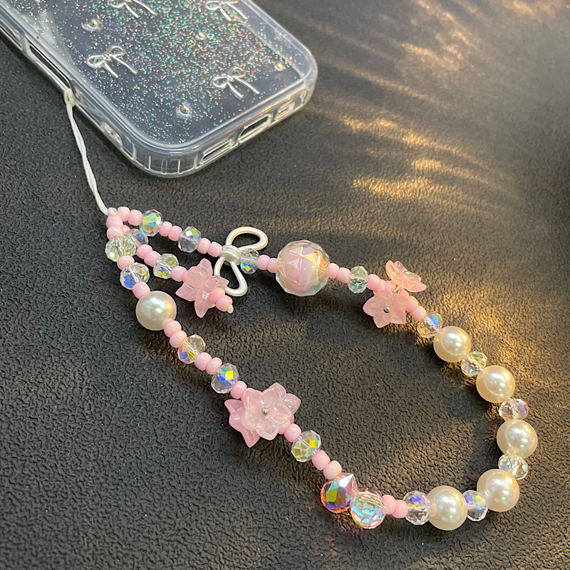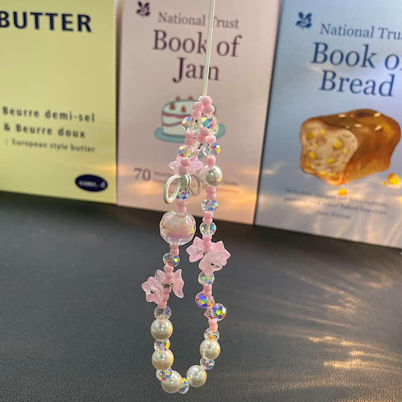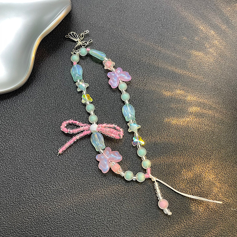 仕様 透明ピンククリスタルビーズラブフラワーリボンストラップ,グリーン ビーズ チューリップ ピンク リボン ビーズ ストラップ バタフライ ストラップ,ピンクと白のビーズのピンクの花のストラップ,紫と白のビーズ紫の花のストラップ