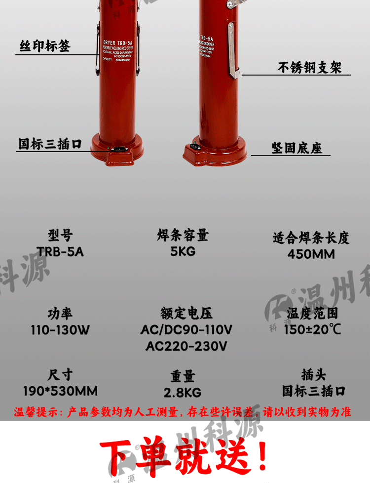 華威電気溶接棒保温桶5kg加熱手持ちTRB-5A w-3横型縦型溶接棒乾燥桶220v
