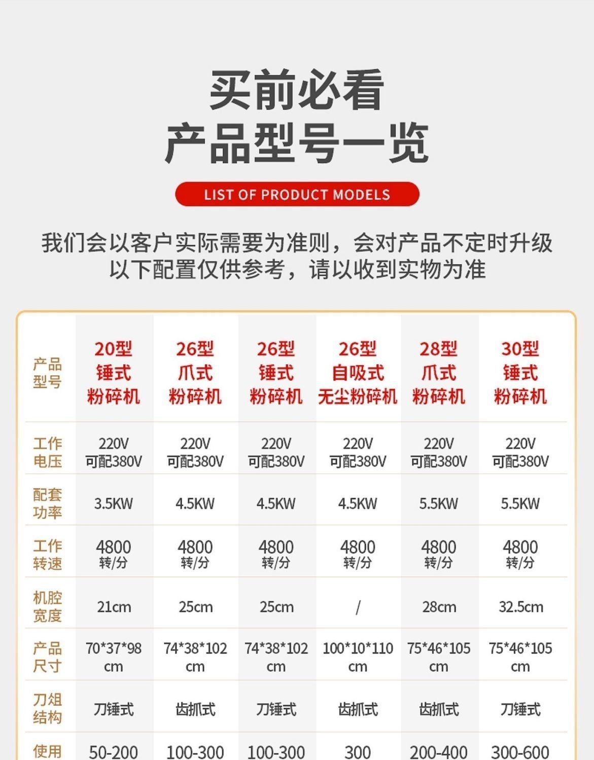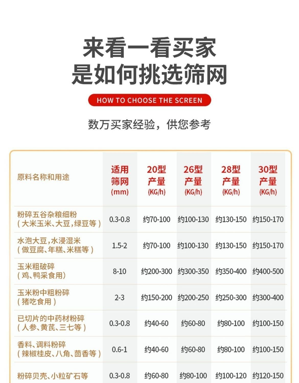 仕様 20#粉砕機(モーターを除く),20#粉砕機(適合モーター),20#クラッシャー(銅コアモーター),26#ハンマーパンチクラッシャー(モーターなし),26#ハンマーパンチ(適合モーター),26#ハンマーミル(銅コアモーター),26#歯爪粉砕機(モーターを除く),26#歯爪粉砕機(適合モーター),26#歯爪粉砕機(銅芯モーター),28 # 歯爪粉砕機(モーターを除く),28#歯爪粉砕機(適合モーター),28#歯爪粉砕機(銅芯モーター),30#ハンマーパンチクラッシャー(モーターなし),30#ハンマーパンチ(適合モーター),30#ハンマーミル(銅コアモーター)