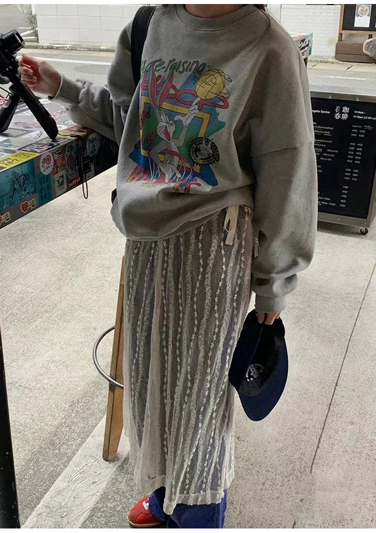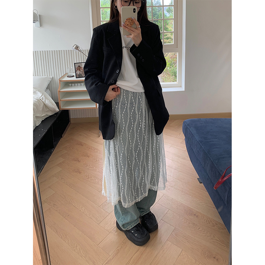Huang Zheng 韓国スタイルのレイヤードレースメッシュスカート女性のための 2025 春アウターレースアップミッドレングススカート女性のための 141QH158