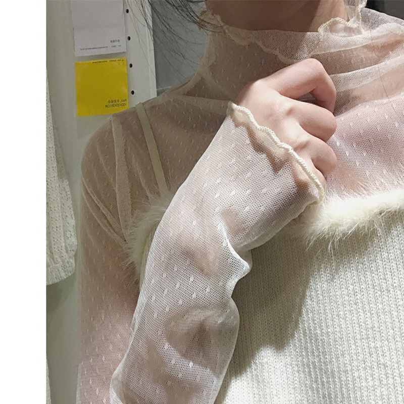 レースの底のシャツの女性の紗の服の春秋冬の新型の底の服の洋風の中で小さいシャツのネットの紗の長袖の透明な上着を掛けます。