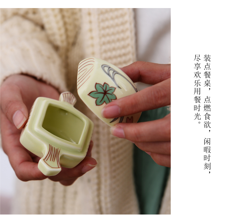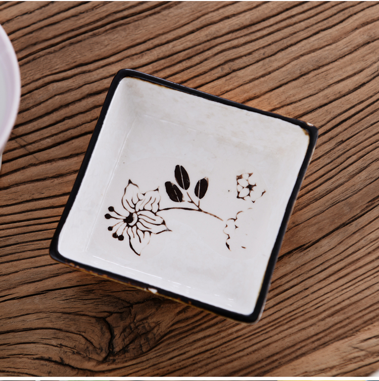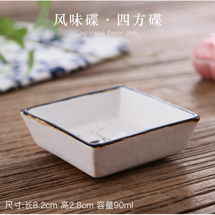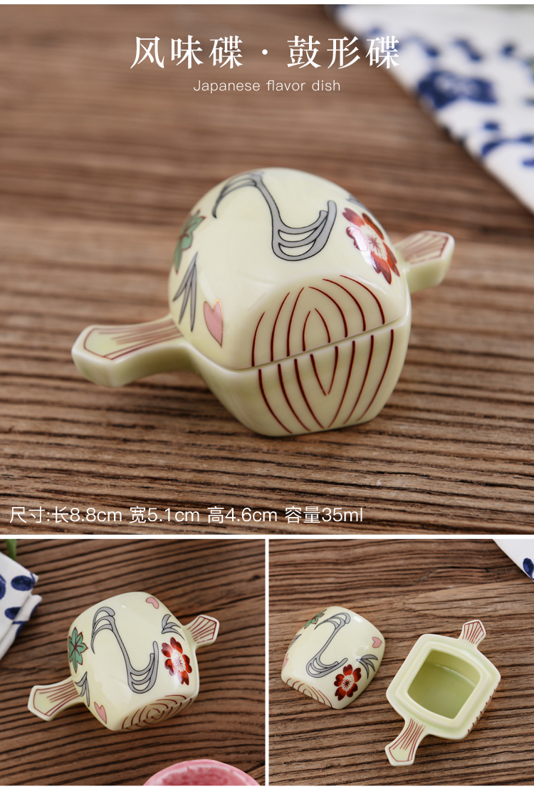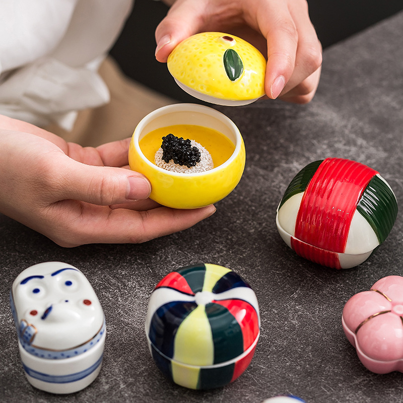 陶磁味皿手描きキャビアケース釉薬下彩日本料理ソースわさび刺身蓋付きアクセサリー食器