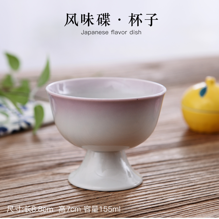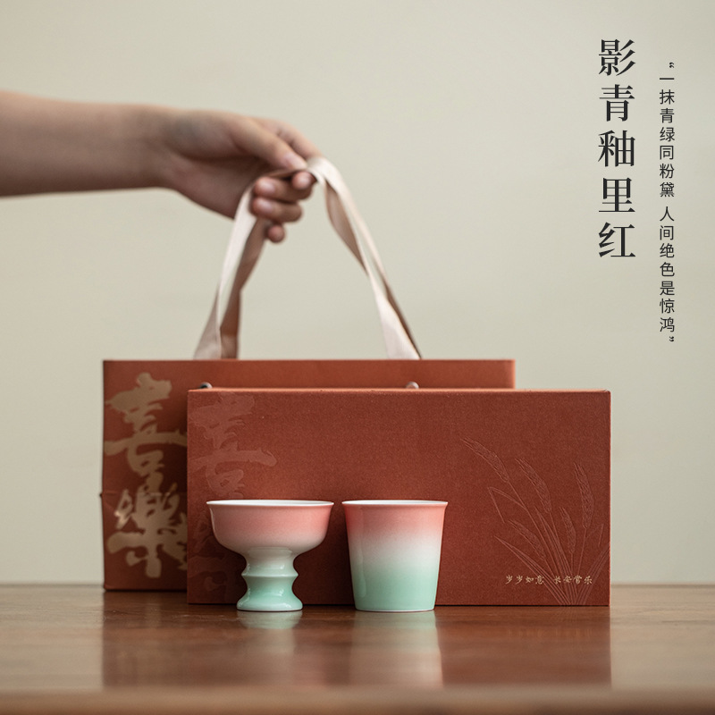 影青釉里红仿宋高脚主人杯家用功夫茶杯陶瓷高足品杯高颜值杯子