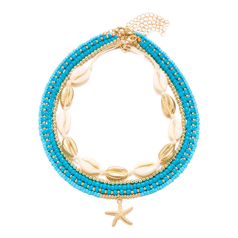 欧米の国境を越えた海洋ビーチハワイのリゾート風米珠単層シンプルな海星貝殻手織り足鎖