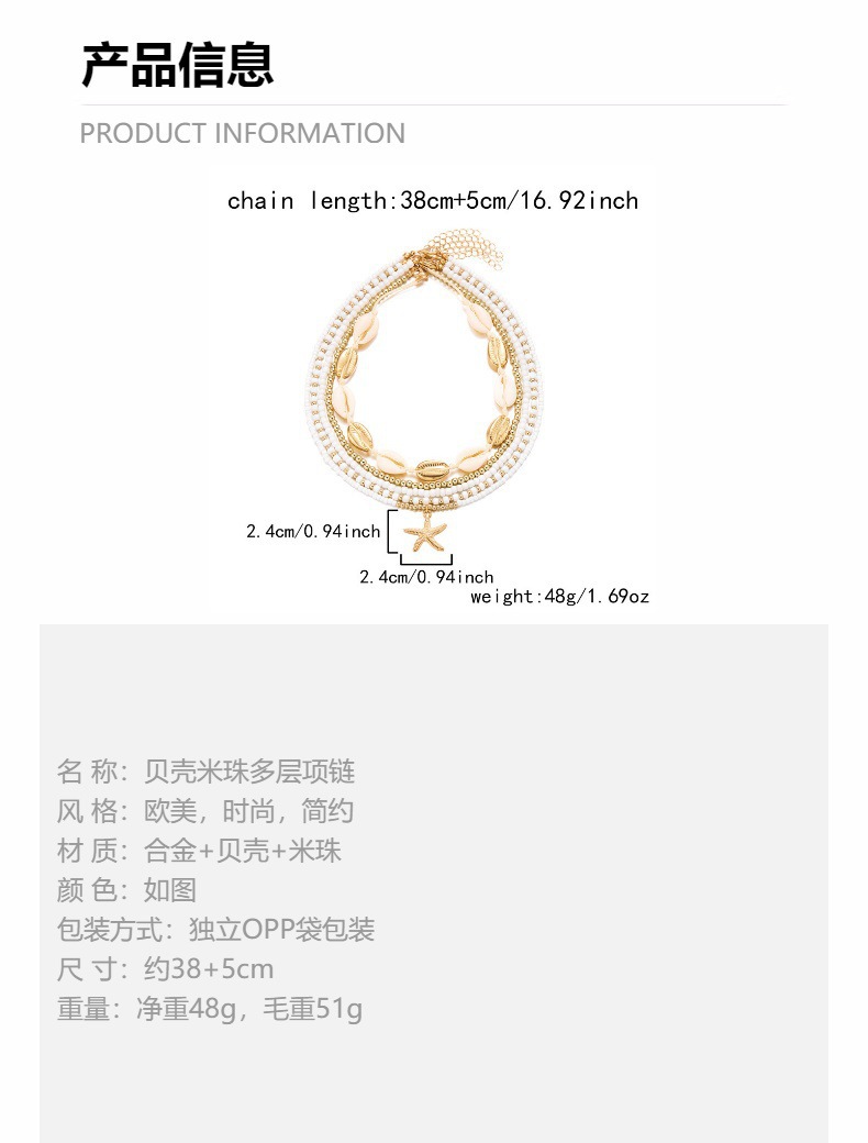 国境を越えた欧米のアクセサリーハワイのリゾートビーチ貝殻ネックレス海洋貝殻二重積層ネックレス鎖